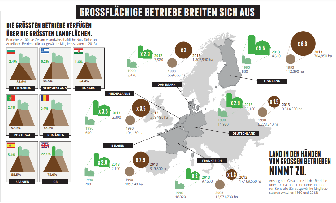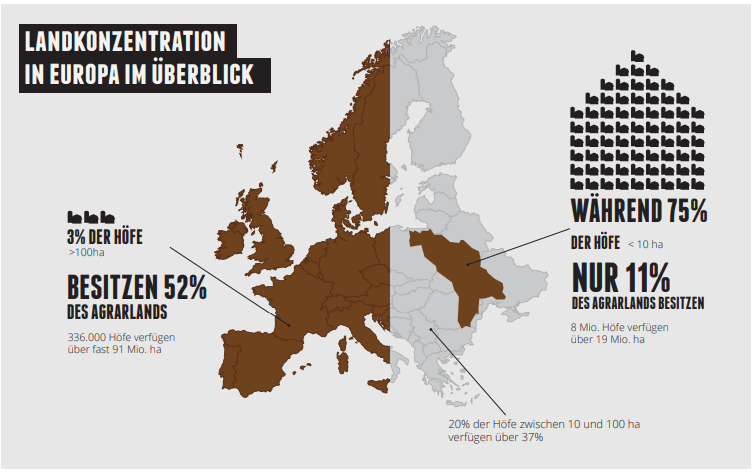 Kleine und mittlere Bauernhöfe haben kaum eine Chance, mit den niedrigen Preisen und der Effizienz der industriellen Landwirtschaft mitzuhalten. Häufig werden sie durch steigende Pachten, Landgrabbing oder die Marktmacht großer Konzerne verdrängt. Dies führt nicht nur dazu, dass ländliche Gemeinschaften ihre Lebensgrundlage verlieren, sondern auch, dass Arbeitsplätze in der Landwirtschaft abgebaut werden.